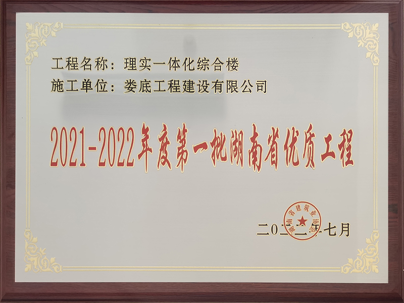 2021-2022年度第一批湖南省優(yōu)質(zhì)工程獎牌(婁底職業(yè)技術(shù)學(xué)院理實一體化綜合樓)