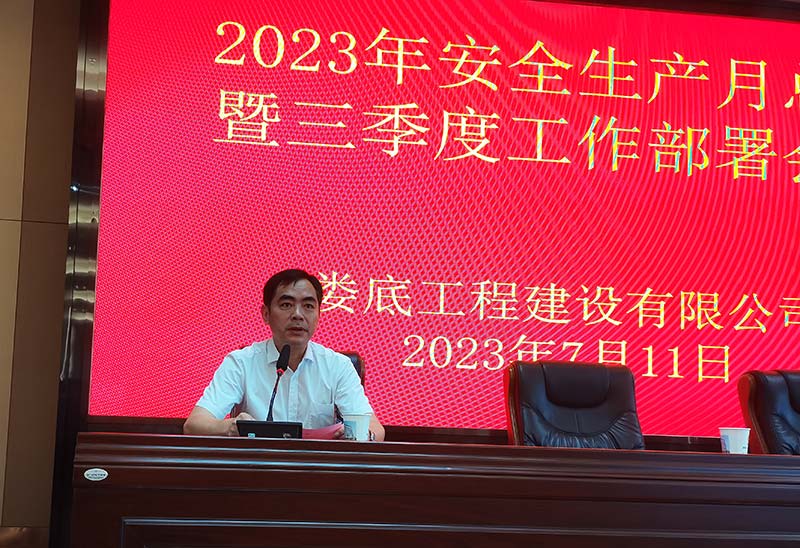 2023年7月11日9點,公司在多功能會議廳召開“2023年安全生產(chǎn)月總結暨三季度工作部署會議”。公司黨支部書記何林、總工程師李偉、副總經(jīng)理彭洪偉、總經(jīng)理助理姜建輝出席了此次會議,機關員工及項目管理人員80余人參加了此次會議。