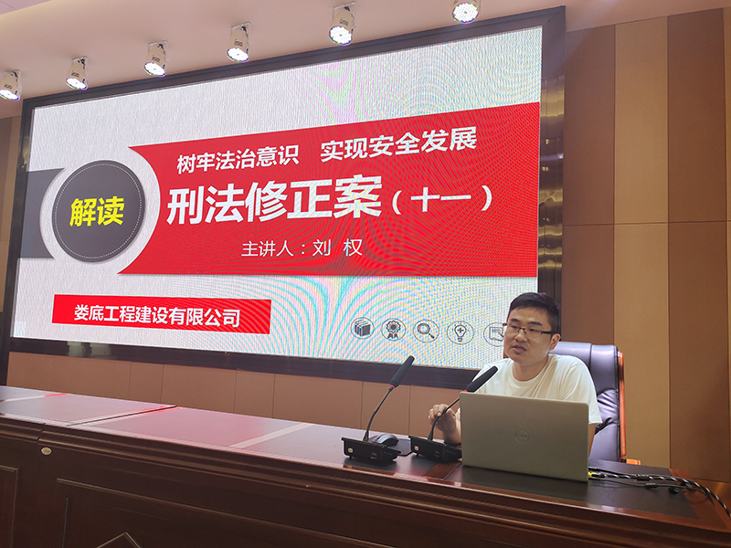 4、工程部解讀《刑法修正案(十一)》、進(jìn)行《提高安全意識(shí)、筑牢安全防線》教育培訓(xùn);