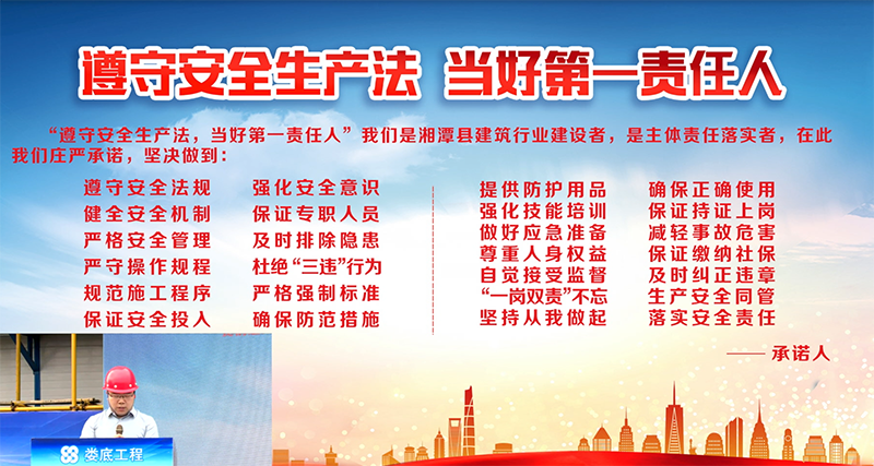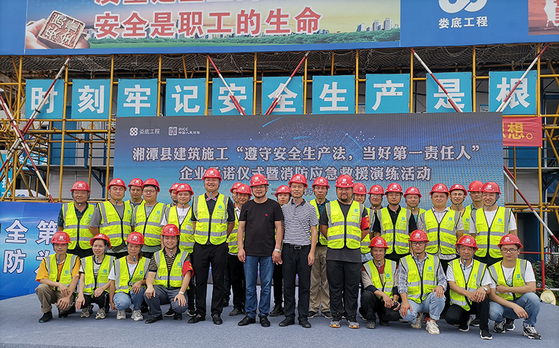 為了進一步加強安全生產工作,認真落實2022年安全生產月活動文件要求“遵守安全生產法,當好第一責任人”有效防范事故的發(fā)生,為進一步提高公司安全管理水平,規(guī)范公司安全生產過程的管理工作,為加強和促進應急管理工作,全面貫徹“安全第一,預防為主,防消結合”的消防工作方針,2022年6月23日9:00,湘潭縣住房和城鄉(xiāng)建設局在我司承建的湘潭江聲壹號一期項目開展了湘潭縣建筑施工“遵守安全生產法,當好第一責任人”企業(yè)承諾儀式暨消防應急救援演練活動。出市本次活動的的嘉賓有:湘潭縣人民政府副縣長肖睿,湘潭縣政府辦副主任言志強,湘潭縣住建局黨委書記局長吳能,湘潭縣應急管理局黨委書記局長:劉江華,德智置業(yè)公司總經理:龔永兵,婁底工程建設有限公司副總經理顏克靈,中國人民財產保險股份有限公司湘潭支公司經理朱星海。