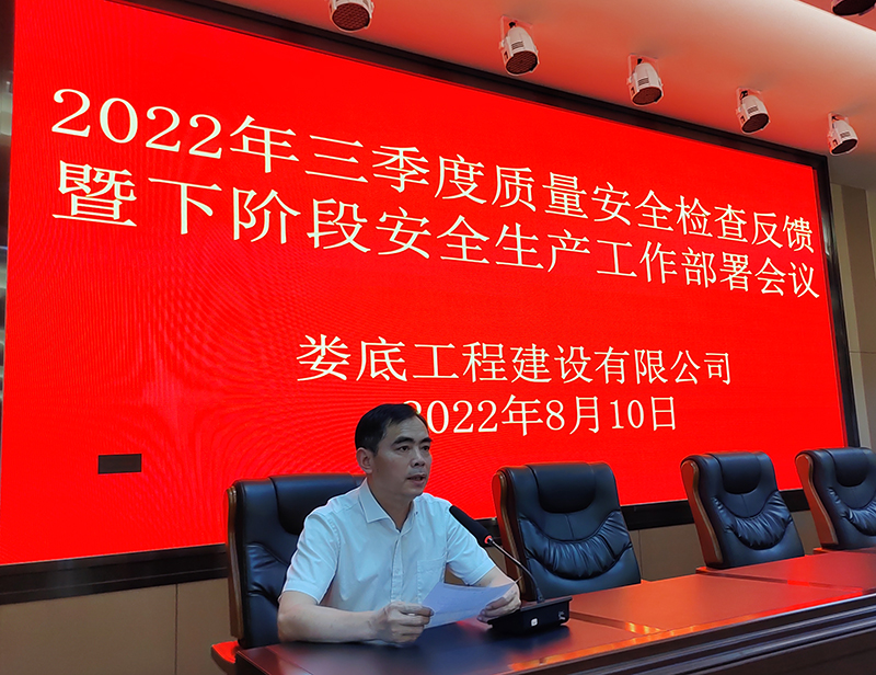 2022年8月10日9點,公司在多功能會議廳召開“2022年三季度安全檢查反饋暨下階段安全生產工作部署會議”。公司總經理胡勁、副總經理彭洪偉、副總經理顏克靈、總經理助理姜建輝出席了此次會議,機關員工及項目管理人員80余人參加了此次會議。